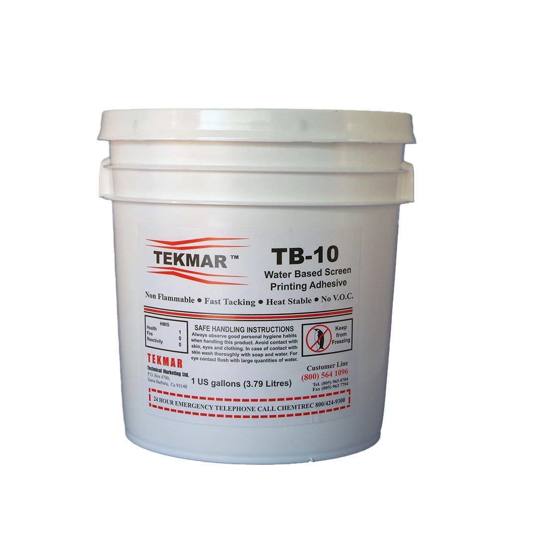 TEKMAR TB-10 Water Based Adhesive es un nuevo adhesivo revolucionario para palets, desarrollado específicamente para la industria de la serigrafía textil. No mancha, es duradero y es un producto totalmente seguro para el medio ambiente.