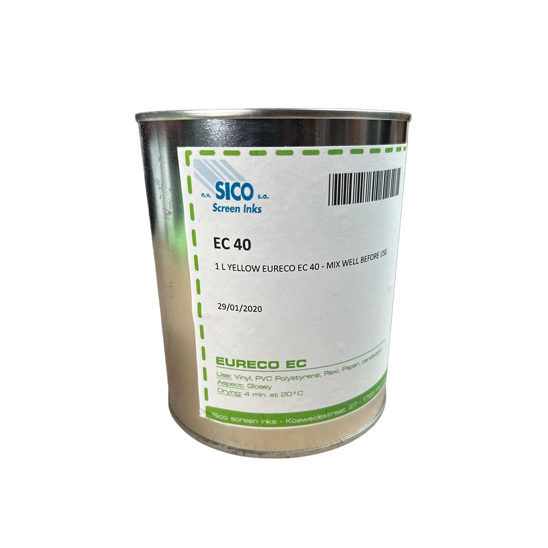 EURECO Aplicación: tinta universal y de fácil aplicación para pegatinas, PVC elástico y duro, plexiglás, ABS, forex, papel, cartón, priplack, pancartas, lienzos, etc… Aspecto: muy brillante.