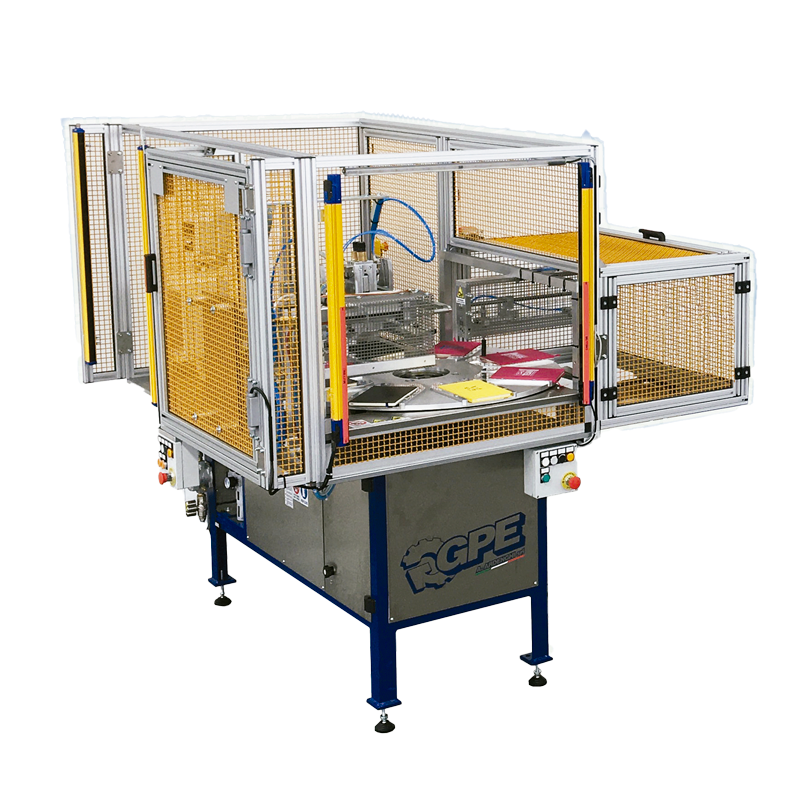 Máquina automática con mesa giratoria para la impresión con registro de objetos planos de pequeñas dimensione