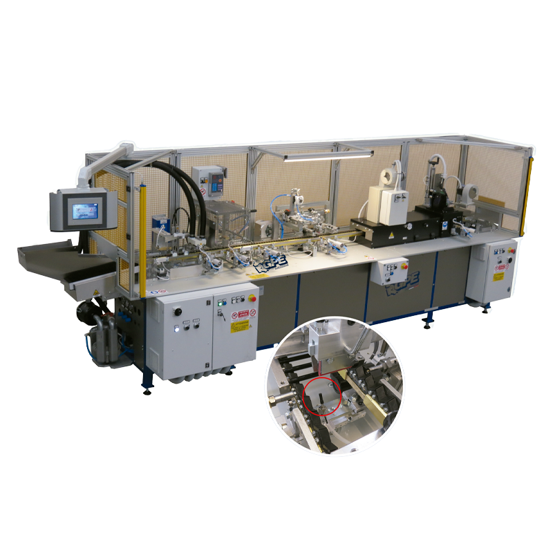 Máquina automática para imprimir con registro óptico en: lápices, barriles y pequeños objetos cilíndricos.