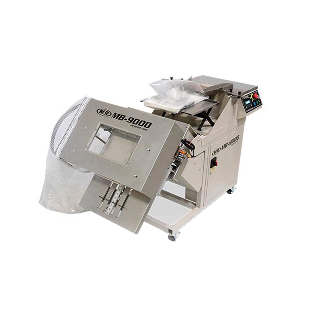 La MB-9000 es la última incorporación a la línea de máquinas de envasado y sellado semiautomáticas asequibles de M&R. Con su diseño compacto y su fácil instalación, la MB-9000 es la opción lógica para todas sus necesidades de envasado y sellado de prendas de tamaño pequeño a mediano. Las guías de acero inoxidable ajustables sin herramientas permiten a los operadores cargar rápidamente prendas previamente dobladas en bolsas con cierre automático preabiertas y luego transferirlas sin esfuerzo a la plataforma de sellado con inclinación ajustable. Antes del sellado, una placa de compresión neumática expulsa suavemente el exceso de aire, lo que produce un producto final plano, apilable y presentable.