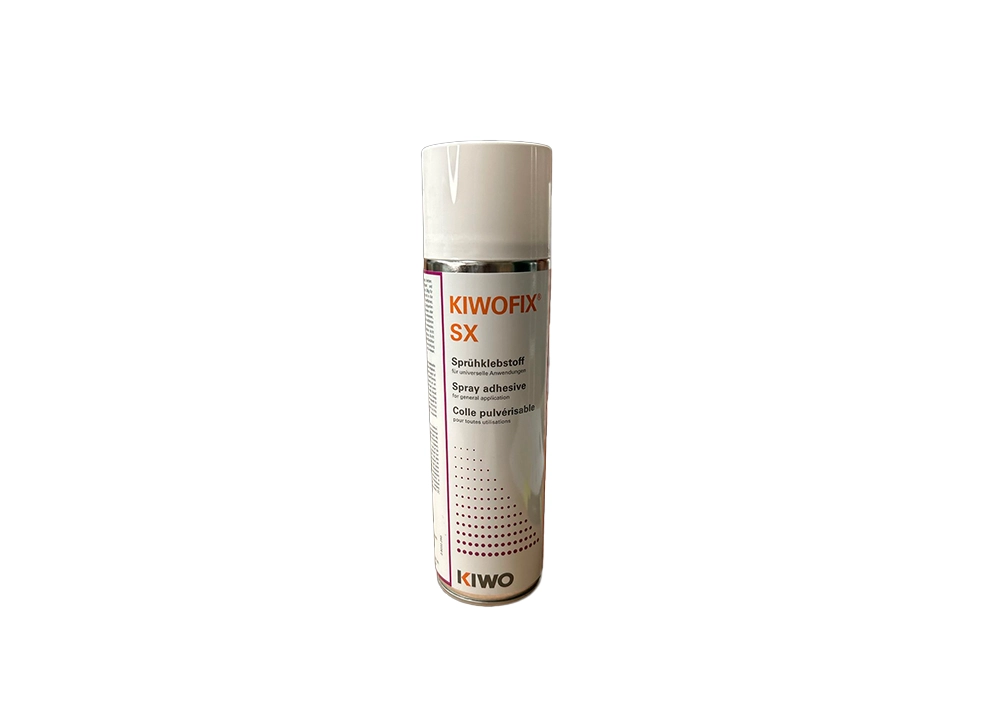 El pegamento en spray Kiwofix SX adhiere al papel, el cartón, la madera, el metal, los tejidos, el fieltro, la goma espuma y varias materias plásticas.
