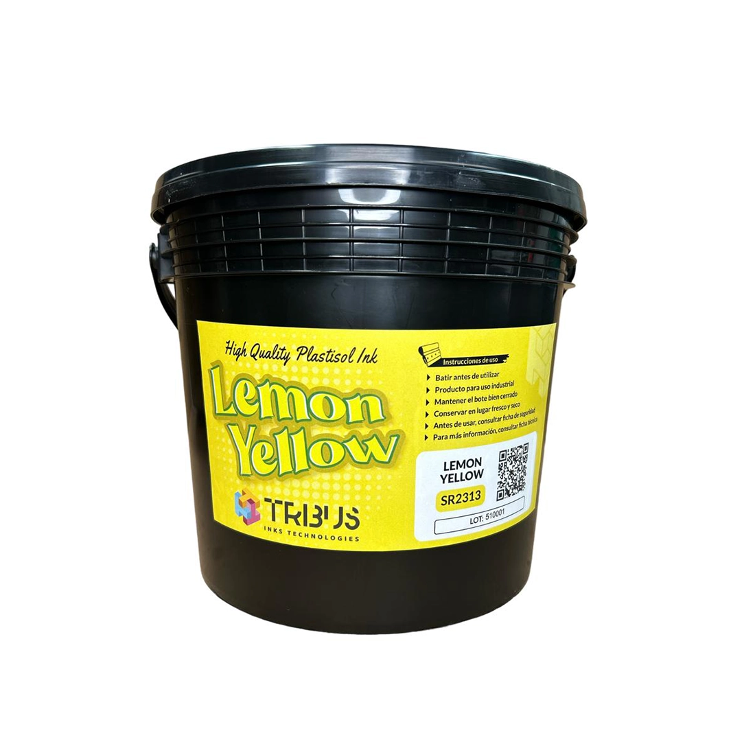 SR2313 TRIBUS LEMON YELLOW LC Tribus Inks Technologies Standard colours, es una serie de tinta plastisol opaco con acabado satinado, buena impresión húmedo sobre húmedo, tacto suave. Libre de ftalatos y metales pesados, y curado de baja temperatura.